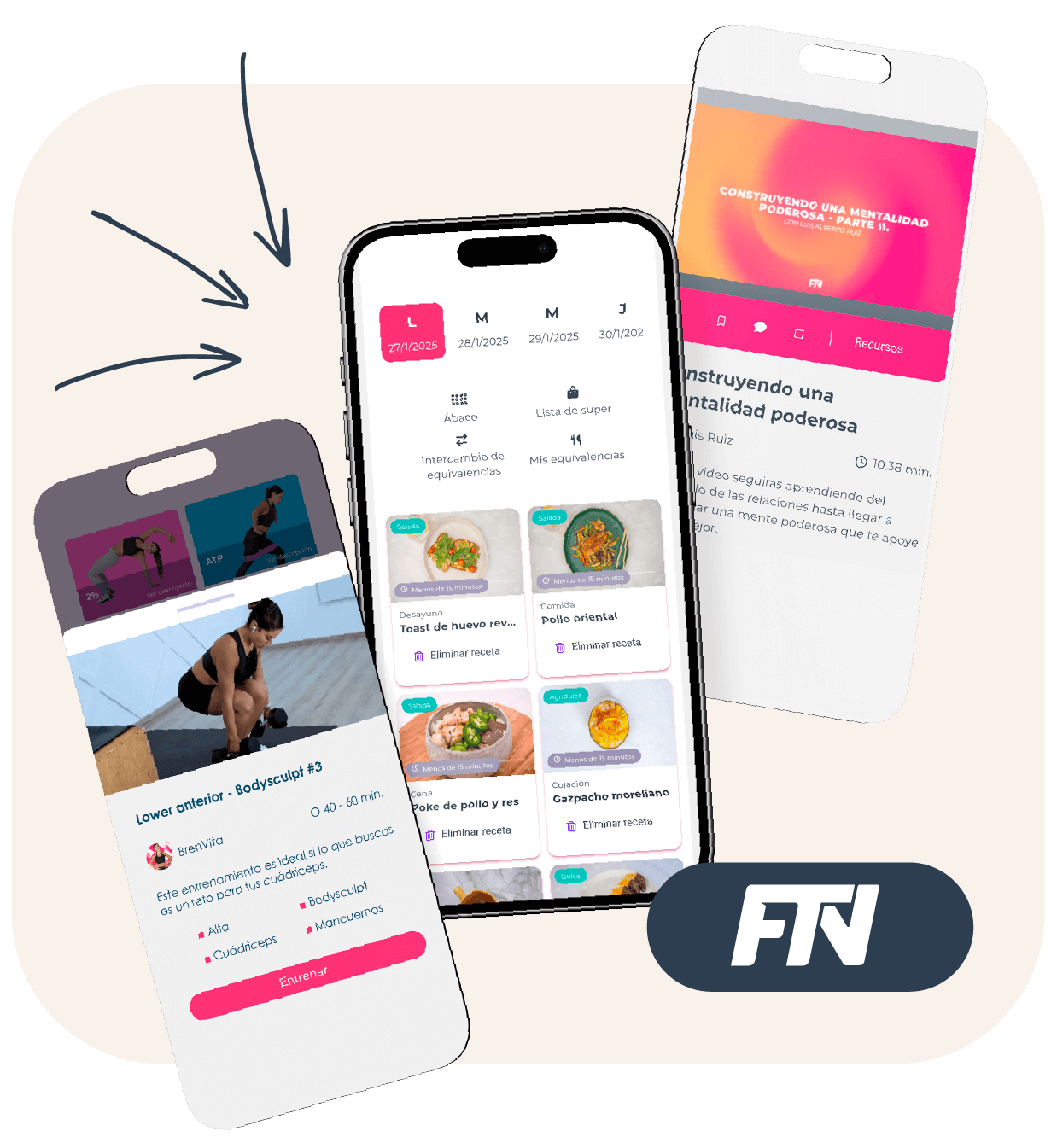 Ya sea que tu meta sea perder grasa, ganar músculo o reconectar contigo misma, FTN te guía paso a paso con herramientas que se adaptan a tu vida real.