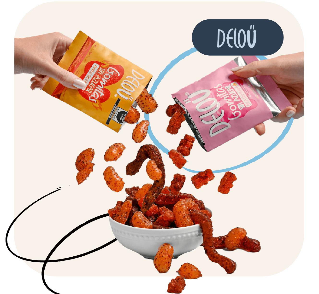 Delou es la marca aliada de los antojos: una línea de snacks indulgentes, 100 % libres de azúcar añadida, creada para que disfrutes sin renunciar a tu bienestar.
